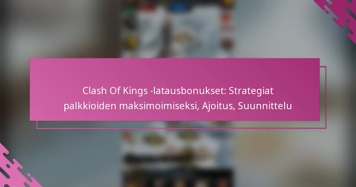 Paras aika ladata bonuksia Clash of Kingsissa on keskeisten pelitapahtumien ja kampanjoiden aikana. Latauksen ajoittaminen voi merkittävästi parantaa saamiasi palkintoja, maksimoiden investointisi peliin.